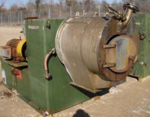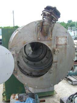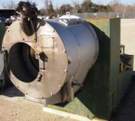 Home › 1270554 1270554 - C-FUGE, PUSHER, E-WYSS, P500-2, 2-STAGE, 500MM, MONEL, 50HP, 25HP [2] MFD.BY:Escher WyssDATE MFD:1985 approx.TYPE:PusherMODEL:P500-/2BASKET DIA:500MM-20''SCREEN SIZE:0.0205'' [0.5mm]MAT'LS CONSTRN-ROTATING ASS'Y:MonelMAT'LS CONSTRN-HOUSING:316LSSDRIVEN BY:50 HP bowl drive, 3/60/230-460V. 1800rpmDRIVEN VIA:V-BeltOSCILLATION/PUSHER DRIVE:25HP 3/60/230-460V. Approx.CAPACITY:24tph approx., depending on product.PRIOR SERVICE:Brine / Chlorine svc.COMMENTS:Main motor VFD, hydraulic motor across line start. One unit missing motors & hydraulic oil tank. Reconditioning 4-5wks. NTE $40000. Control panel, with VFD NTE $35000 5-6wks. 316SS outer housing. Monel basket.SHIPPING SIZE-W X H X L:5'W X 5'H X 7'LAPPROX. WEIGHT-LBS:7500#QUANTITY:2 Print Print with no images