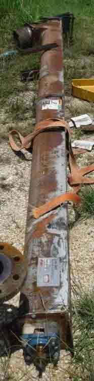 • COMMENTS:Conveyor shaft is supported by two 3"dia. roller bearings, outboard, one at each end. Shaft is sealed by a lip seal at tail end, lip & packed seal at head end. Inside the trough the shaft is approx 3"dia, the conveyor blades approx 3/16" thick material.[t