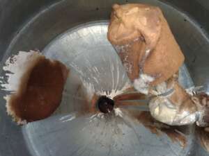 TYPE:Two jacketed conical shells of equal length joined at 180° to one another with cylindrical parallel shell section transition between the two cones. Rotation is around the horizontal axis, material tumbles out of one cone and into the other as the shell ro