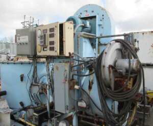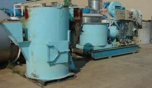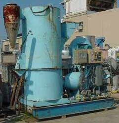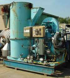COMMENTS:Packaged with control panels, burner and gas train, skid mounted.. Burner outlet duct feeds into side of drying chamber in lower plenum. Gravity feed chute. Cyclone collector at discharge. Accesss door and glass inspection ports.