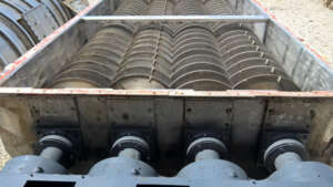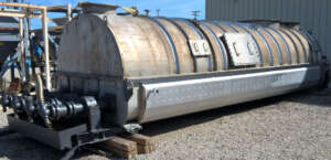 - COMMENTS:Heated screws and trough. 6" screw flite pitch, approx. 5/16" thick. 2B smooth finish, welds ground smooth, 1 mixing lifter per flite. Trough 6'9" wide, 2'6" deep, discharge 5' X 12". Rotary joints. Top vapor cover, 42"ID outlet. Steam snuffing connection