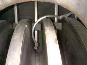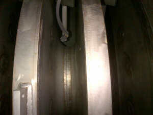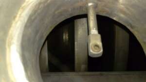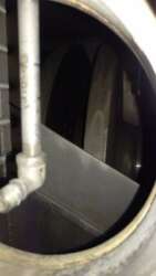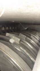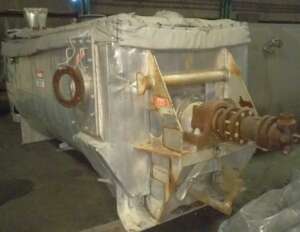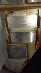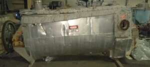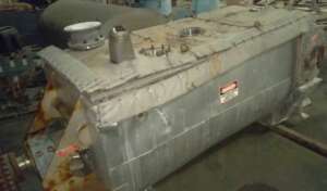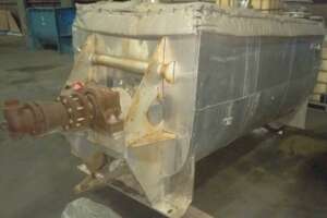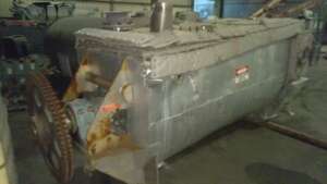 MFD.BY: Hosokawa. Strong Scott, Divn Bepex DATE MFD: 1989. Refurbished 2002 by Hosokowa / Bepex TYPE: Torus disc, continuous processor. Dries high viscosity, pasty, solid products in a trough via a series of cored discs rotating on a shaft through the product. MODEL: TDJ-36-8 SIZE: 36-8 (16 @ 36"dia. Discs, 8''spaced) Trough approx 42"w x 8'6" long. MAT'L.CONSTRN: 304SS Trough, Cover, Rotor, Shaft, Packed gland Seal housings HEAT SOURCE: Steam Rotor. Water jacketed. Jkt rated 75# @ 450 Deg F. Trough 5 psig @ 450Deg F. Rotor 150 psig @ 400 Deg F. TEMPERATURE: 450Deg F DRIVEN BY: 20HP 3/60/460V DRIVEN VIA: Gearmotor, 68RPM out, via 30"dia double chain sprocket bull gear. Rotor 18rpm approx. PRIOR SVC: Crystallized Pellet Dryer. Appears little used or unused since rebuild. COMMENTS: Cored shaft w/rotary joint. Dodge TAP.XT roller bearings. New rotor fitted 2002. ASME Nat.Bd.. Top cover connections 10", 8" [3]. Trough volume approx 260CF. SHIPPING SIZE-W X H X L: 4'W X 6'H X 14'L APPROX. WEIGHT-LBS: 5000# QUANTITY: 1