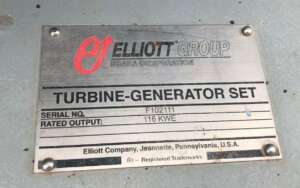 TYPE:Steam turbine powered electric Generator. Skid mounted Non-condensing Steam Turbine direct coupled to an Induction electric Generator with remote control panels.