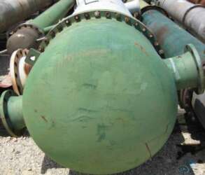 TYPE:Shell and tube heat exchanger. Cylindrical shell with internal tube bundle. Fluid medium passes through shell, over tubes, transferring heat to/from process fluid passing through tubes.