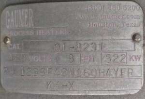 - COMMENTS:Skid mounted package, 480v elements, 120v control panel. No pumps, fluid externally circulated. New control panel $20000 extra. Connections:6" 300#RFWN flanged inlet/outlet.