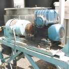 TYPE:Munson mixer. Batch operation. Self cleaning. Horizontal axis, cylindrical shell with conical ends opposite one another, rotating around the axis of a line drawn through cone ends. Shell has internal lifters arranged in a "chevron" pattern which lift and