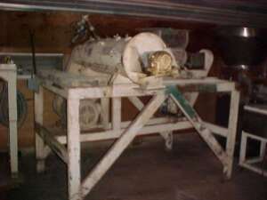 COMMENTS:14" dia. x 42" long mixing chamber. Mounted on 4' high 4 leg stand, unitized w/feeder & drives.