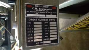 COMMENTS:20-185rpm via 12:1 reducer and 3HP DC Drive Type GP100, 1/60/230v, 16A. Type 266 6-zone electric Hot oil heater system with pump. temperature control 300-750Deg F max. Mounted on common cabinet base with controls.